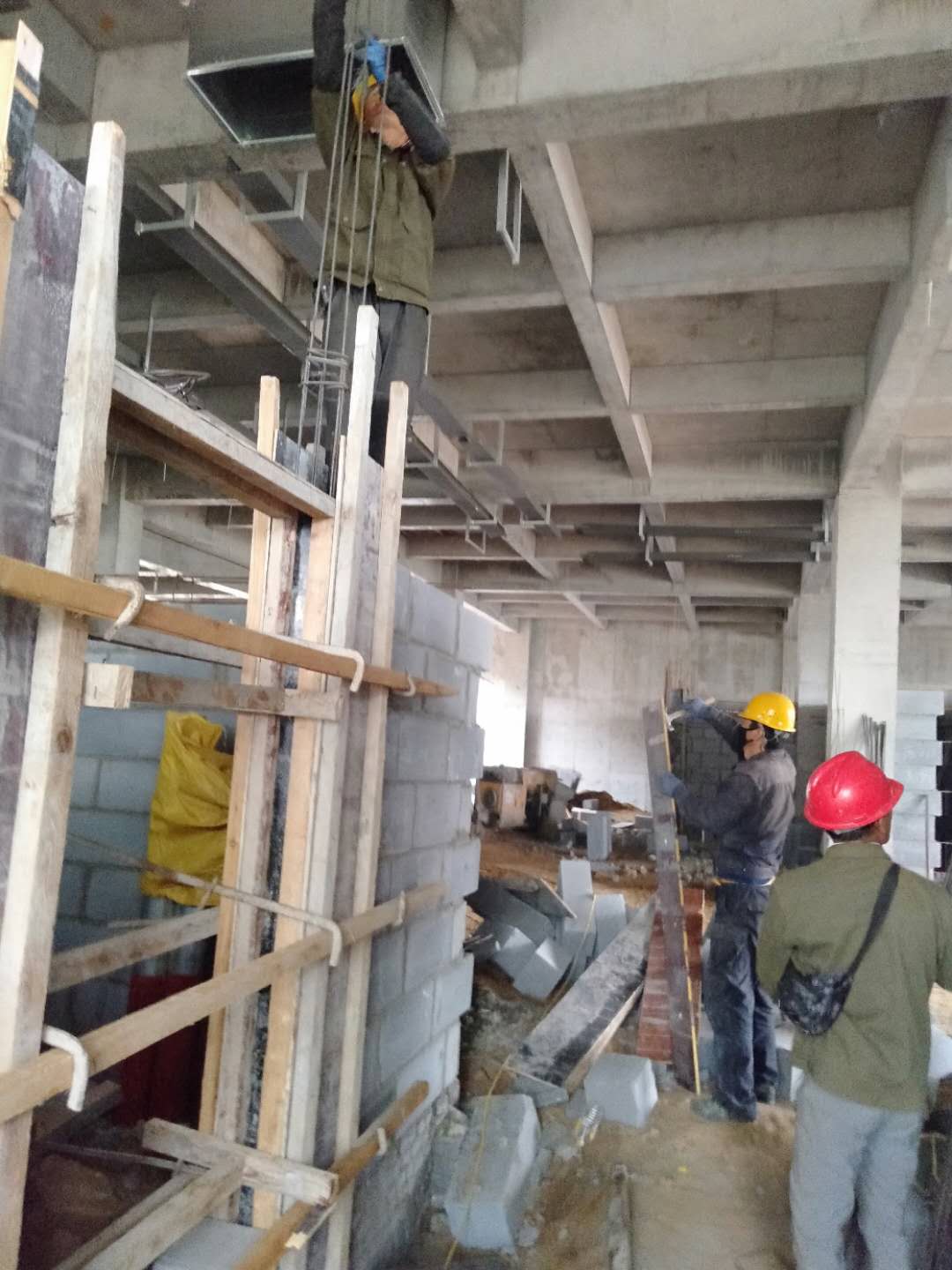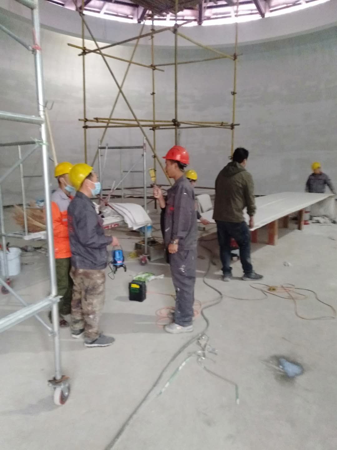 五一節(jié)假日期間,仍有160余名工人在進行吊頂、消防等作業(yè)。