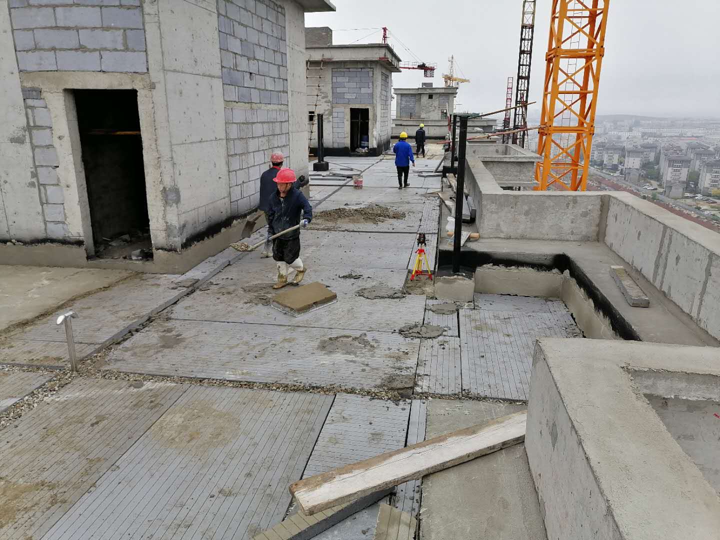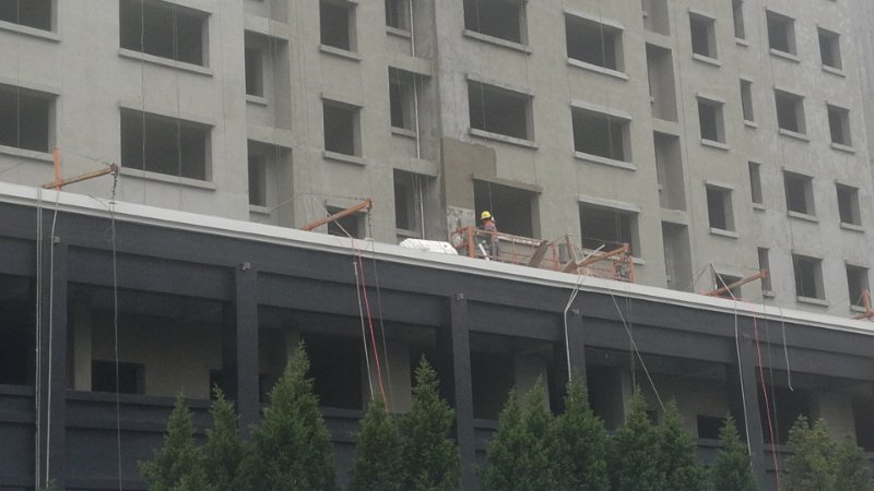 萬利城項目目前仍有70余名工人進行內(nèi)墻抹灰、外墻保溫施工作業(yè)。