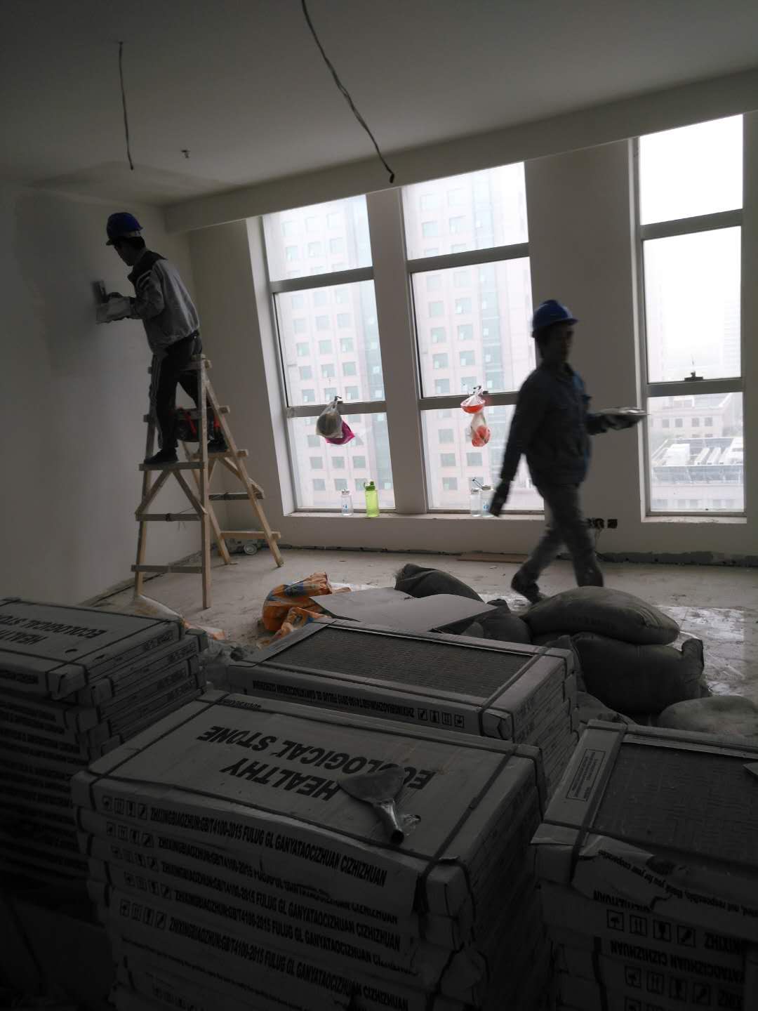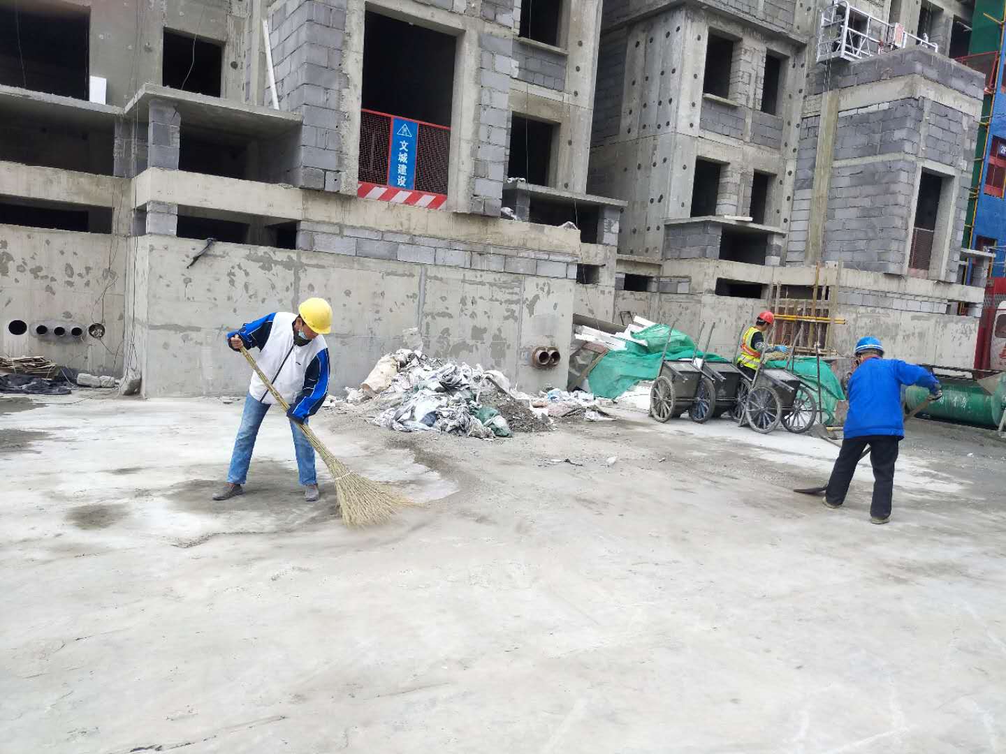 城西小區(qū)目前仍有接近200名工人在進行墻體抹灰、水電安裝等作業(yè)。